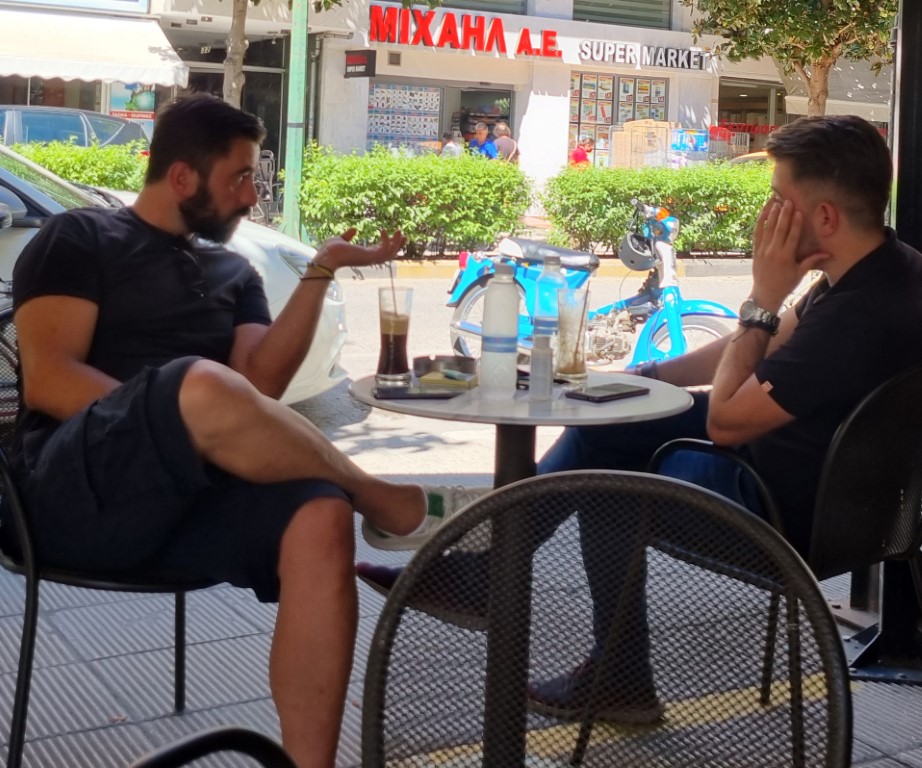 Ο λόγος για τον πρόεδρο της Τοπικής Ν.Δ. Αλέκο Αραπογιάννη ο οποίος ακούει τον αντιπρόεδρό του και Γαρδικάρχη Άρη Αλεξίου να του αναλύει τα δεδομένα που έχουν δημιουργηθεί και ίσως φέρνουν Κυβέρνηση και κόμμα σε δύσκολη θέση.