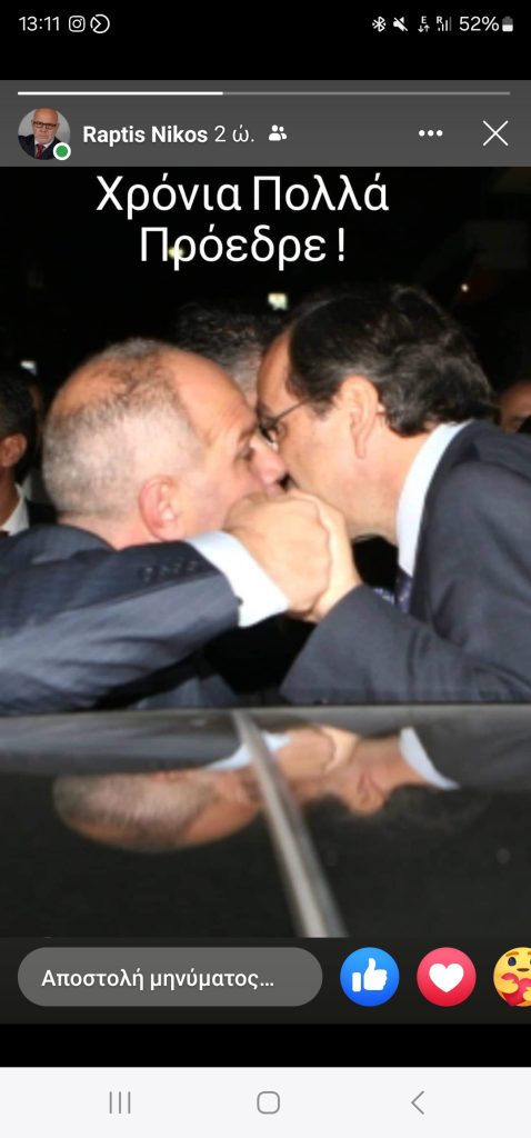 Λέγεται ότι εμπνευστής του συνθήματος υπήρξε ο δικός μας, ο εκ της Τζούρτζιας καταγόμενος, Νίκος Ράπτης. Αυτός δεν ξεχνάει ποτέ φίλους κι αδελφούς και ως αναμενόταν ανήμερα της εορτής του Αγίου Αντωνίου ανήρτησε φωτογραφία αγκαλιά με τον πρώην πρωθυπουργό…