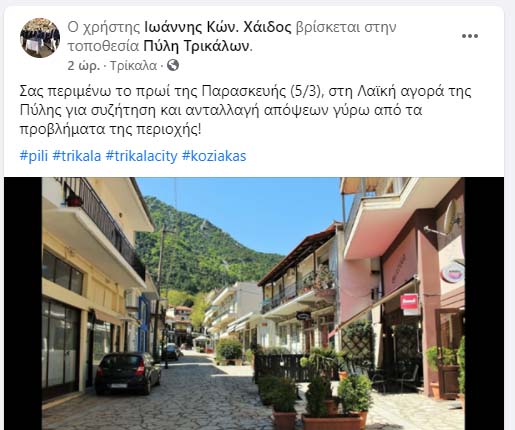 Νέα ήθη μας φέρνει σε καιρό πανδημίας ο Γιάννης Χάιδος, εν δυνάμει υποψήφιος βουλευτής Τρικάλων του ΣΥΡΙΖΑ. Ο νεαρός φαρμακοποιός και ήδη από 2ετίας περιφερειακός σύμβουλος εγκαινιάζει τις επαφές με τους πολίτες σε… ανοιχτούς χώρους “για ανταλλαγή απόψεων”. Αρχίζει από Πύλη μεριά όπου δίνει ραντεβού με το λαό στη… λαϊκή της πόλης το πρωί της Παρασκευής…