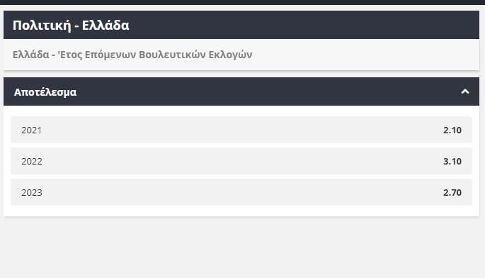 Στο 2.10 (φαβορί) η απόδοση για εκλογές μέσα στη χρονιά