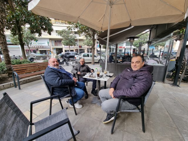 Πιστοί στο ραντεβού τους καθ’ εκάστην πρωία Κυριακής βρέθηκαν στο VELO στην πλατεία Χατζηπέτρου να αναλύουν τα νέα δεδομένα και να “προβλέπουν” εκλογές ο Κώστας ο Κρεμμύδας, ο δημοτικός του σύμβουλος Δημήτρης Ζαϊράκης και ο Περικλής Πελικάνος. Σταθερά αγωνιστές στο χώρο των ιδεών και της σοσιαλδημοκρατίας…