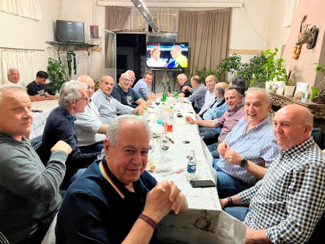 Μια από αυτές τις παρέες εντόπισε ο φακός του trikalavoice.gr σε… παράμερο ταβερνάκι της πόλης. Εκεί παρακολούθησαν τον αγώνα και μεταξύ τυρού… παϊδακίου και κρασιού σχολίασαν τον αγώνα ο βιομήχανος Μιχάλης Σαράντης που διακρίνεται με τον εκκολαπτόμενο δημοτικό σύμβουλο Τρικκαίων Χρήστο Ζαραμπούκα στο πλευρό του, ο ιατρός και πρόεδρος του ΑΟΤ Κώστας Παρδάλης, ο ιστορικός πρόεδρος του Ιατρικού Συλλόγου Γιώργος Πέτρου, ο ιατρός και σχολιαστής της επικαιρότητας Νίκος Κώτσης, ο μαιευτήρας Γιώργος Παπαγεωργίου, ο αποκαλούμενος και άγιος της ιατρικής, ο εκφραστής της γνήσιας και φωνής του λαού, οδοντίατρος Βασίλης Πανάγος, ο ακτινολόγος και μέγας μύστης των εκλογών Νίκος Μπακογιάννης και άλλοι πλείστοι εκλεκτοί!… Ανανέωσαν τα ραντεβού τους για τα Ευρωπαϊκά ματς του καλοκαιριού πια και για τις… αυτοδιοικητικές εκλογές του Οκτώβρη!!!…