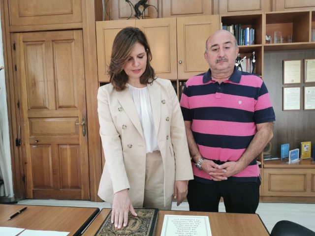 Η Μαρίνα Καραμέτου – Στοφόρου έδωσε τον νενομισμένο όρκο ενώπιον του Δημάρχου Τρικκαίων Νίκου Σακκά, ο οποίος ευχήθηκε «καλή θητεία» στη νέα δημοτική σύμβουλο, προς όφελος των πολιτών του Δήμου.