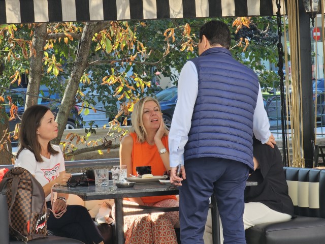 Υπουργοί, αντιδήμαρχοι, νυν και πρώην πολιτικοί. Χαμός… Στο εξαιρετικά ενδιαφέρον στιγμιότυπο διακρίνεται (πλάτη) ο ευγενής υπουργός Ανάπτυξης Κώστας Σκρέκας να χαιρετά την κυρία υπουργού, Σούλα Μπράκη, σύζυγο Δημήτρη Παπαστεργίου, την Μερόπη Κωτούλα, σύζυγο Ιωάννη Κωτούλα και την Εβίτα Ζουρνατζή. Πολιτισμός…