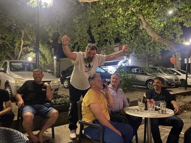 Τρελά τα πανηγύρια για τον προπονητή των μεγάλων επιτυχιών του TAE KWON DO Νίκος Παϊταρίδης, βαμμένου “γαύρου”, ο οποίος έκανε… “Ζατς”-που λέμε και στα χωριά μας-στον αντιδήμαρχο και Τσάρο της Οικονομίας του Μουζακίου Χρήστο Κουτρομάνο, ο οποίος απαξιεί να απαντήσει μιλώντας στο τηλέφωνο. Μεγάλες στιγμές…