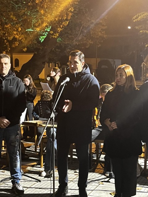 Τα παιδιά έψαλαν τα κάλαντα μαζί με τη χορωδία του Μουσικού Σχολείου Τρικάλων και τη διευθύντριά του Γεωργία Κολοβελώνη. Ο πρόεδρος της “Αστικής Ανάπτυξης” Γιώργος Ζιώγας, κάτοικος του οικισμού, ευχήθηκε καλές γιορτές σε όλους, όπως και η εκλεγμένη δημοτική σύμβουλος Βίβιαν Τέγου-Καρακούση και ο εκλεγμένος περιφερειακός σύμβουλος Σάκης Ξάφος. Όλοι απένειμαν τα εύσημα στους προέδρους των δυο συλλόγων Βαγγέλη Ντάνα και Ευγενία Νταϊλιάνη. Ακολούθησαν κεράσματα και τραγούδια.