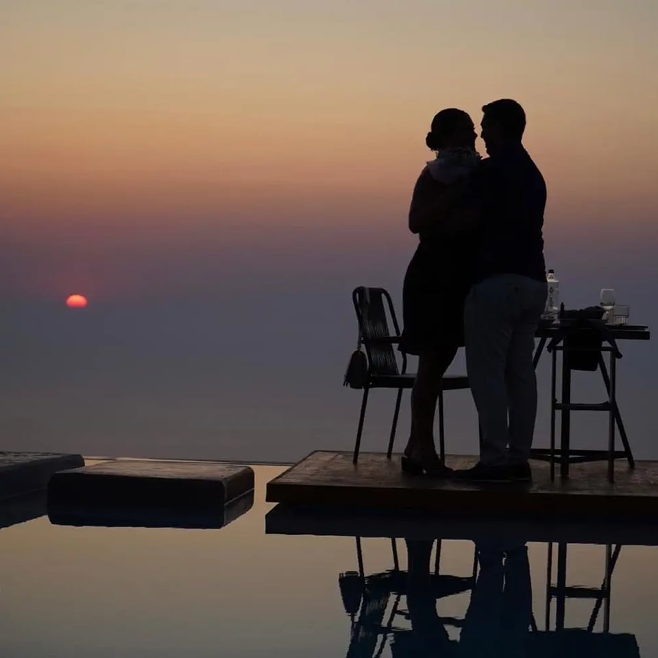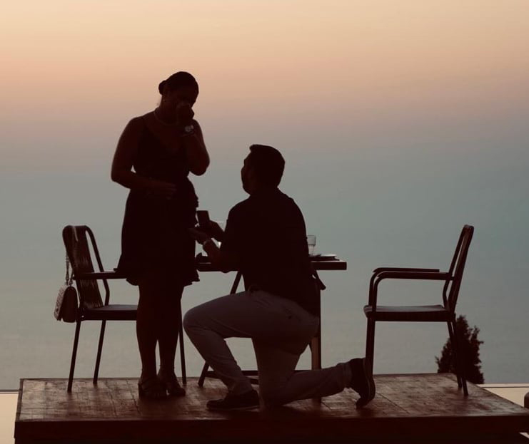 Όλα συνέβησαν το δείλι του Σαββάτου, παραμονή Δεκαπενταύγουστου, όταν ο Θάνος αιφνιδίασε την αγαπημένη του, γονάτισε μπροστά της τη στιγμή που ο ήλιος βουτούσε στα νερά του Ιονίου πελάγους και της ζήτησε να… ζήσουν μαζί τα υπόλοιπα ηλιοβασιλέματα της ζωής τους!!!… Το κορίτσι αιφνιδιάστηκε και φυσικά απάντησε… “ναι” υπό τον ήχο των χειροκροτημάτων των υπολοίπων θαμώνων!!!… Με το καλό τα παιδιά… Δείτε το βίντεο με τη στιγμή της πρότασης γάμου: