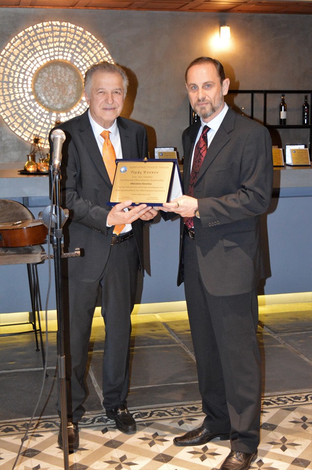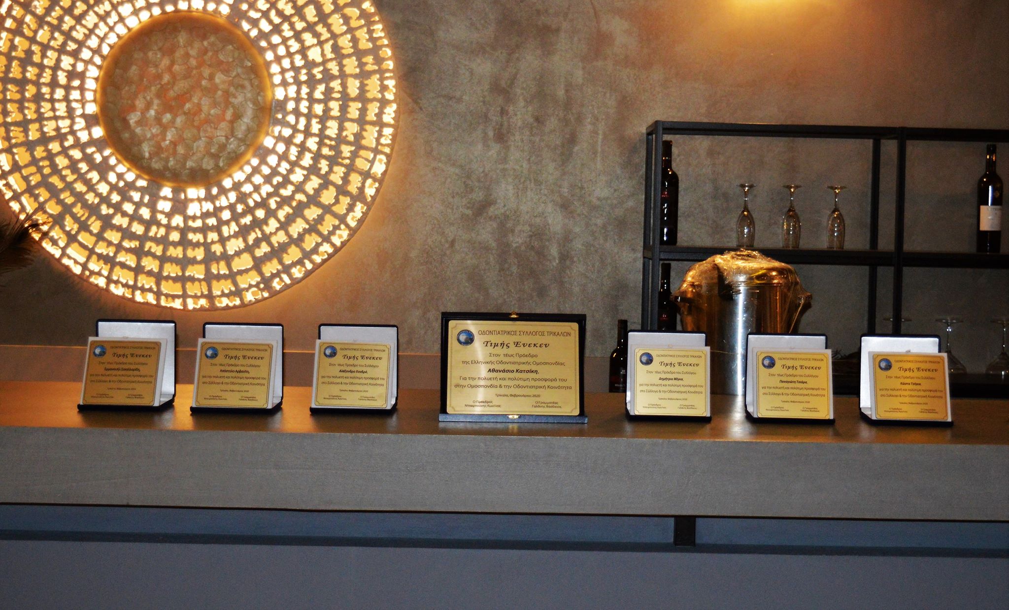 Στο πλαίσιο της εκδήλωσης ο Σύλλογος βράβευσε, με απονομή τιμητικής πλακέτας, τον συντοπίτη μας τέως Πρόεδρο της Ελληνικής Οδοντιατρικής Ομοσπονδίας κ. Αθανάσιο Κατσίκη καθώς και τους τέως Προέδρους του Συλλόγου κ. Σακελλαρίδη Εμμανουήλ, Αρβανίτη Απόστολο, Χονδρό Αλέξανδρο, Μίγκα Δημήτριο, Τσιάρα Παναγιώτη και Τσίγκα Κωνσταντίνο, ευχαριστώντας τους για την πολυετή και πολύτιμη προσφορά τους στον κλάδο. Σε μια κατάμεστη από κόσμο αίθουσα-όπου, κυριολεκτικά, δεν έπεφτε καρφίτσα-η συγκίνηση και η χαρά διαδέχονταν ως συναισθήματα το ένα το άλλο δίνοντας εν τέλει-και μέχρι αργά- τη θέση τους στη διασκέδαση και το κέφι, που άναβε με τη βοήθεια της 4μελούς ορχήστρας και των υπέροχων κρασιών χορηγίας του Οινοποιείου Λούδα.