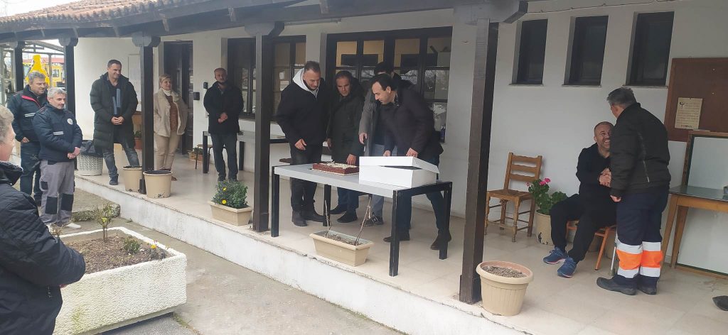 Παρουσία του δημάρχου Δημήτρη Παπαστεργίου και του αρμοδίου αντιδημάρχου Φόρη Ρόμπου πραγματοποιήθηκε το μεσημέρι της Παρασκευής η κοπή της πίτας των εργαζομένων στο Αμαξοστάσιο του Δήμου Τρικκαίων.