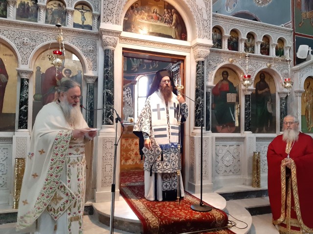 Το πρωί της Κυριακής ιερούργησε στον Μητροπολιτικό Ναό Αγίου Νικολάου, ενώ το απόγευμα ευλόγησε την Αγιοβασιλόπιτα του Συλλόγου στο Πνευματικό Κέντρο της Μητροπόλεως. Η πρόεδρος αυτού, Φωτεινή Παπαχρήστου, τον καλωσόρισε με λόγους σεβασμού και αγάπης και αναφέρθηκε στο σπουδαίο έργο που αυτός ποιεί  στην Επισκοπή του.
