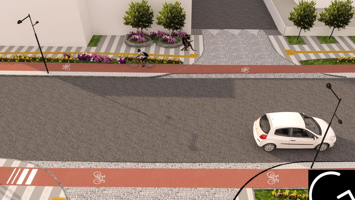 – Δημιουργείται ποδηλατόδρομος πλάτους 1,50μ, μονής κατεύθυνσης, εντός του πεζοδρομίου.