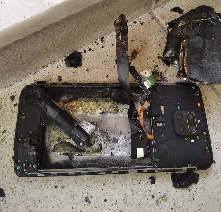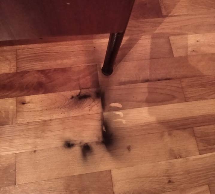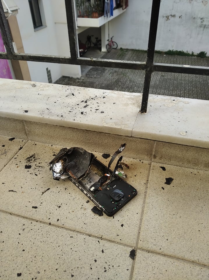Συγκεκριμένα και όπως αναφέρει Τρικαλινή (σ.σ. τα στοιχεία της είναι στη διάθεση της σελίδας μας) στο trikalavoice.gr ενώ βρισκόταν στο σπίτι με το μόλις 16 μηνών μωρό της το κινητό της τηλέφωνο άρχισε να παρουσιάζει… περίεργα σημάδια. Άρχισε να θερμαίνεται και να διογκώνεται και μέσα σε δευτερόλεπτα να βγάζει καπνούς και σπίθες, απ’ τις οποίες μάλιστα κάηκε και ένα κομμάτι από το στρώμα του κρεβατιού. Άφησε το τηλέφωνο από τα χέρια και αυτό έπεσε κάτω αφήνοντας σημάδι στο πάτωμα, όπως φαίνεται στην παρακάτω φωτογραφία.