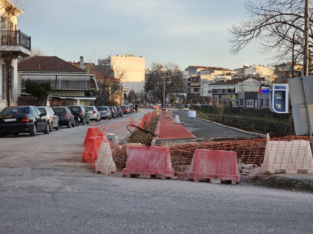 Όπως καταγράφει το trikalavoice.gr μέσα σε 15 μέρες ο ποδηλατόδρομος έφτασε μέχρι το ύψος του Μαιευτηρίου, ενώ ήδη ξεκίνησαν οι εργασίες και από την απέναντι πλευρά της γέφυρας Τρικκαίογλου, επί της οδού Λάκμωνος. Στόχος είναι μέχρι το Πάσχα να “κουμπώσουν” τα τμήματα του ποδηλατόδρομου από το Μουσείο Τσιτσάνη μέχρι την οδό Καλαμπάκας (“Σκλαβενίτης”) και από Ιακωβάκη μέχρι Μαιευτήριο. Το δύσκολο τμήμα είναι αυτό της Όθωνος όπου θα πρέπει να σπάσει η νησίδα και να μεγαλώσουν τα πεζοδρόμια κι έτσι θα ολοκληρωθεί σχεδόν το δίκτυο, με την πλατεία “Εθνικής Αντίστασης” (Κιτριλάκη) να απομένει μόνο.