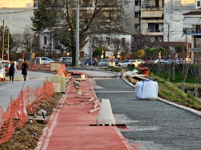 Με εντυπωσιακά γρήγορους ρυθμούς προχωρά η νέα φάση κατασκευής του δικτύου ποδηλατοδρόμων της πόλης των Τρικάλων.