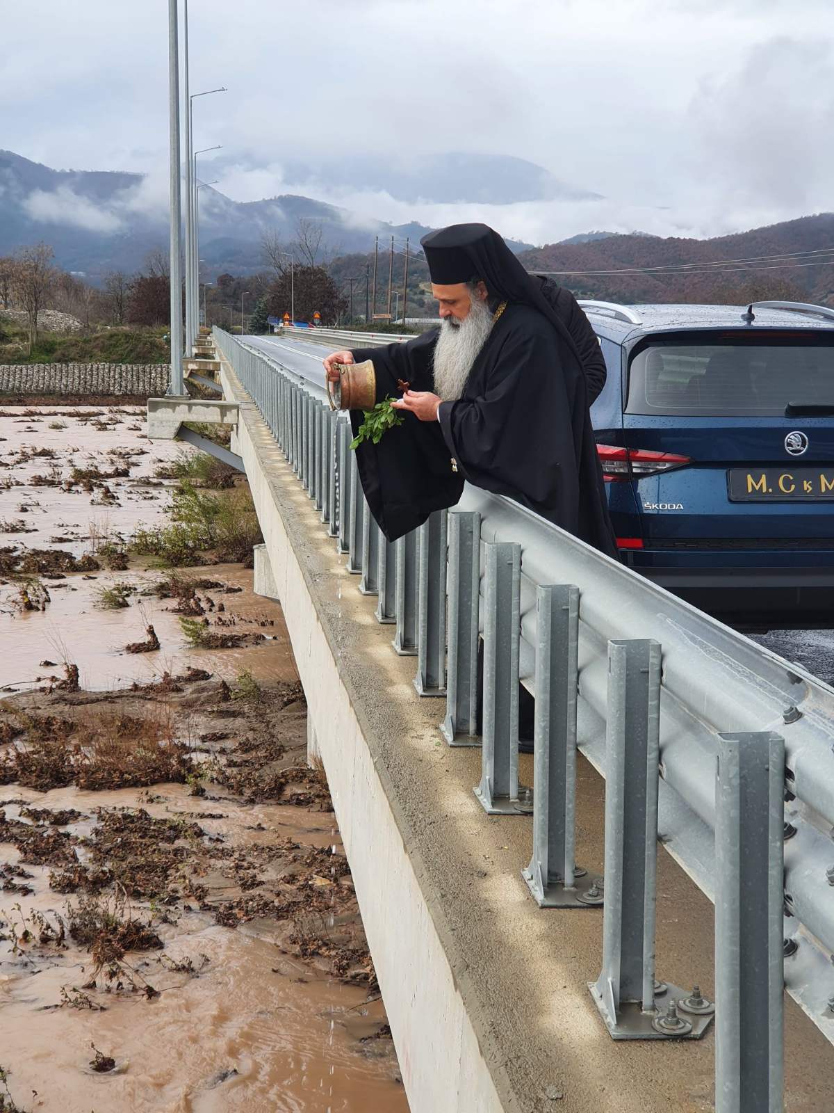 Με το πέρας της Θείας Λειτουργίας κατευθύνθηκε μόνος προς τη γέφυρα της Διάβας, όπου παραδοσιακά γίνονταν τα προηγούμενα χρόνια ο Αγιασμός.