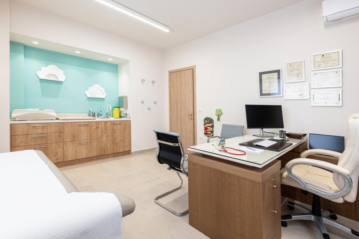 Στο ιατρείο που διατηρεί στα Τρίκαλα (Αβέρωφ 32 και Β. Τσιτσάνη) παρέχει σύγχρονες και υψηλού επιπέδου υπηρεσίες υγείας σε ένα φιλικό περιβάλλον με γνώμονα την αγάπη για το παιδί. Στο ιατρείο υπάρχει ξεχωριστός χώρος ειδικά διαμορφωμένος για τις θηλάζουσες μητέρες.