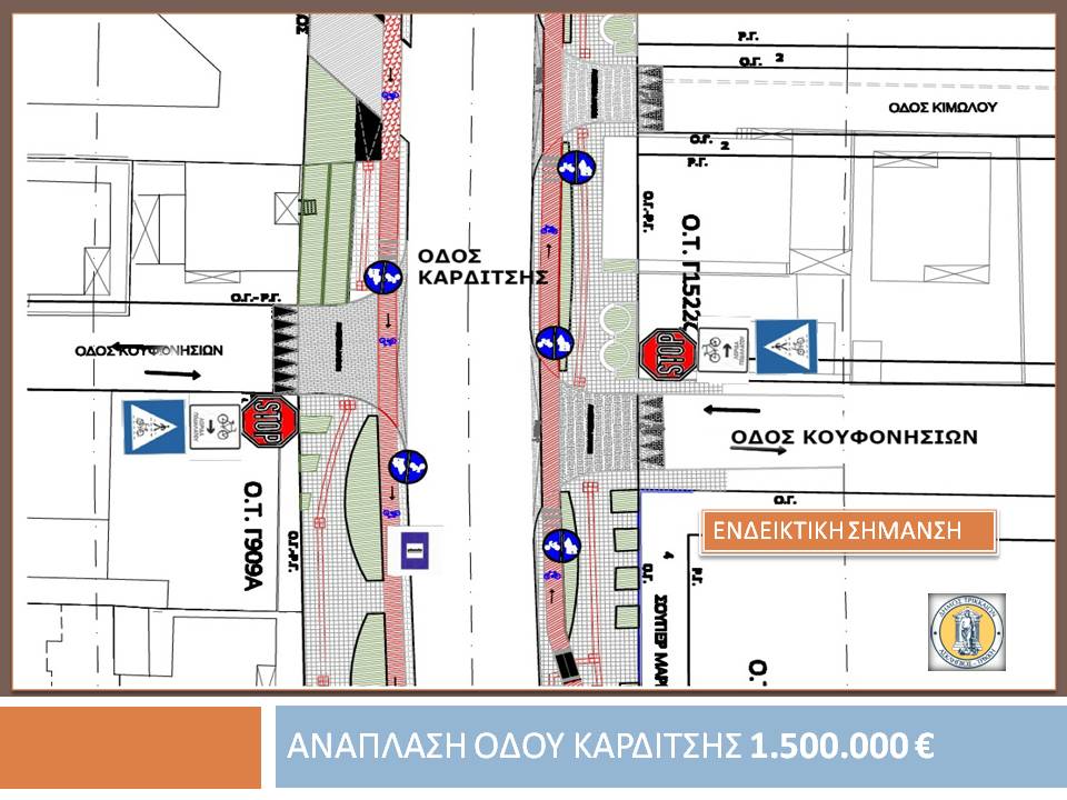 – Στα σημεία διασταύρωσης των κάθετων οδών με την οδό Καρδίτσης θα κατασκευαστούν ανισόπεδες διαβάσεις, για ανεμπόδιστη κίνηση πεζών, ΑμεΑ και ποδηλατών