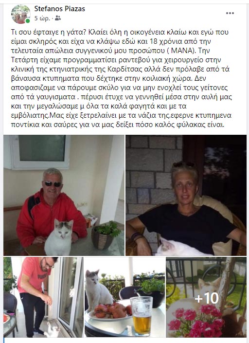 Σοβαρή καταγγελία του παλαίμαχου Τρικαλινού ποδοσφαιριστή Στέφανου Πιάζα για βασανισμό της γάτας του, που είχε ως αποτέλεσμα να καταλήξει από τα τραύματα.