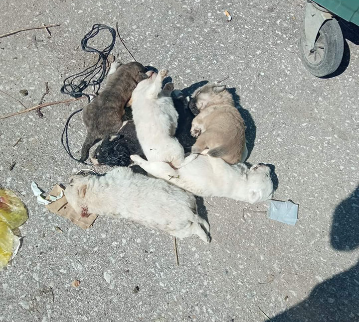 Σκύβοντας να δει τι ακριβώς συμβαίνει διαπίστωσε αμυδρά κίνηση από ένα τσουβάλι που ήταν καλά κλεισμένο και δεμένο από πάνω. Το πήρε, το άνοιξε και αποκαλύφτηκε ότι μέσα σε αυτό βρίσκονταν έξι (6) κουταβάκια!!!… Τα πέντε (5) εξ αυτών ήταν ήδη νεκρά, ενώ το ένα, που προκαλούσε και το θόρυβο πάλευε για να παραμείνει στη ζωή.