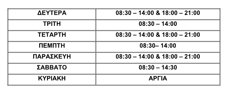 Το προτεινόμενο ωράριο είναι το ακόλουθο: