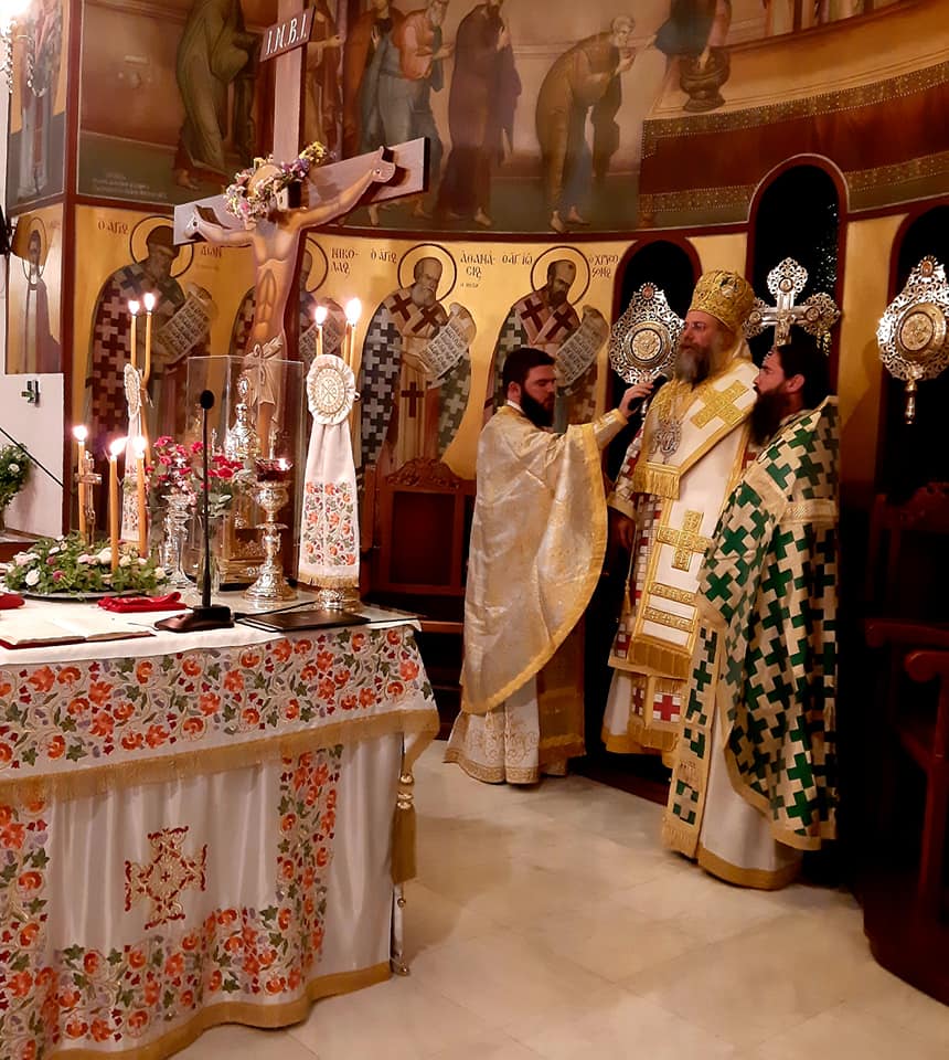 Χθες βράδυ τελέστηκε στον Ιερό Ναό Αγίων Κωνσταντίνου και Ελένης Τρικάλων Αρχιερατική Αγρυπνία ιερουργούντος του Μητροπολίτου Τρίκκης και Σταγών Χρυσοστόμου, συμμετοχή του Πρωοσυγκέλλου της καθ’ ημάς Μητροπόλεως πατρός Αλεξίου Κανίνα και του εφημερίου του Ναού πατρός Νικολάου Δαλαγιώργου. Ο κ. Χρυσόστομος ομίλησε καταλλήλως στους πιστούς που προσήλθαν ευλαβικά για να προσκυνήσουν ευχόμενος ο Σταυρός, ο οποίος μας υπενθυμίζει τη θυσία του Χριστού μας, να τους γεμίζει δύναμη για να ξεπερνούν τις δυσκολίες της ζωής.