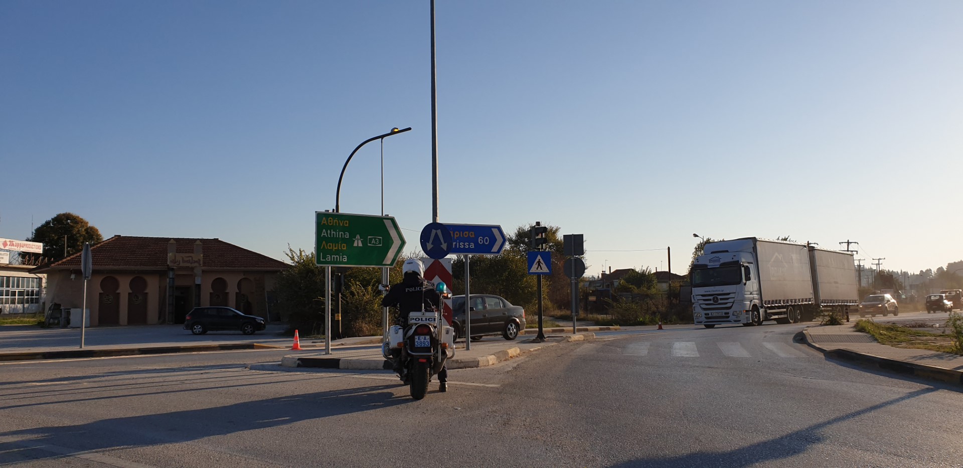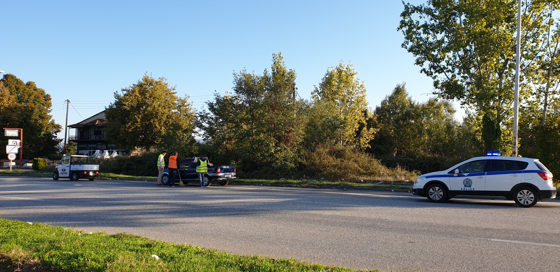 Τοποθετήθηκαν κώνοι για να είναι προσεκτικοί οι οδηγοί και από νωρίς το πρωί του Σαββάτου συνεργεία του Δήμου με επικεφαλής τον αντιδήμαρχο Καθαριότητας Γιώργο Ζιώγα, αλλά και άντρες και γυναίκες της Τροχαίας προσπαθούν να καθαρίσουν το δρόμο και ρίχνουν πριονίδι.