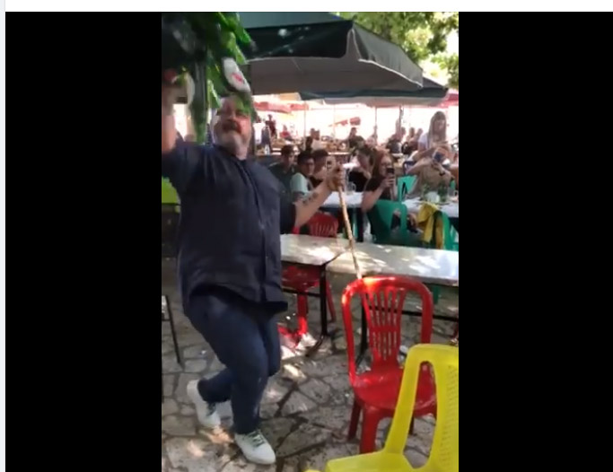 Σε τσακίρ κέφι σηκώθηκε υπό τους ήχους της “Καραγκούνας” και… σιγοπερπατώνταςμιας και οι χοροί απαγορεύονται, έφτασε με ένα κιβώτιο μπύρες στη καρέκλα της Τάσας και… μπαμ!!!… Δείτε το βίντεο: