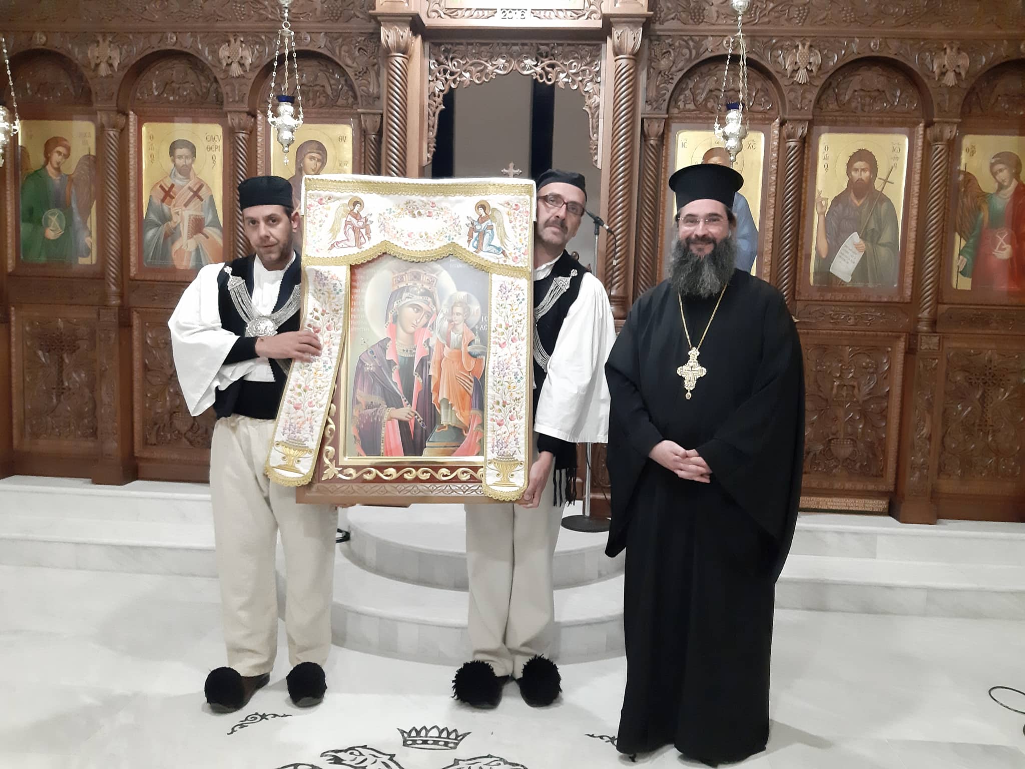 Σε ιδιαίτερα φορτισμένο συγκινησιακά κλίμα έγινε το απόγευμα της Τρίτης η υποδοχή της Ιεράς Εικόνας της Παναγίας Βασίλισσας στον Ιερό Ναό Αγίων Κωνσταντίνου και Ελένης Τρικάλων.