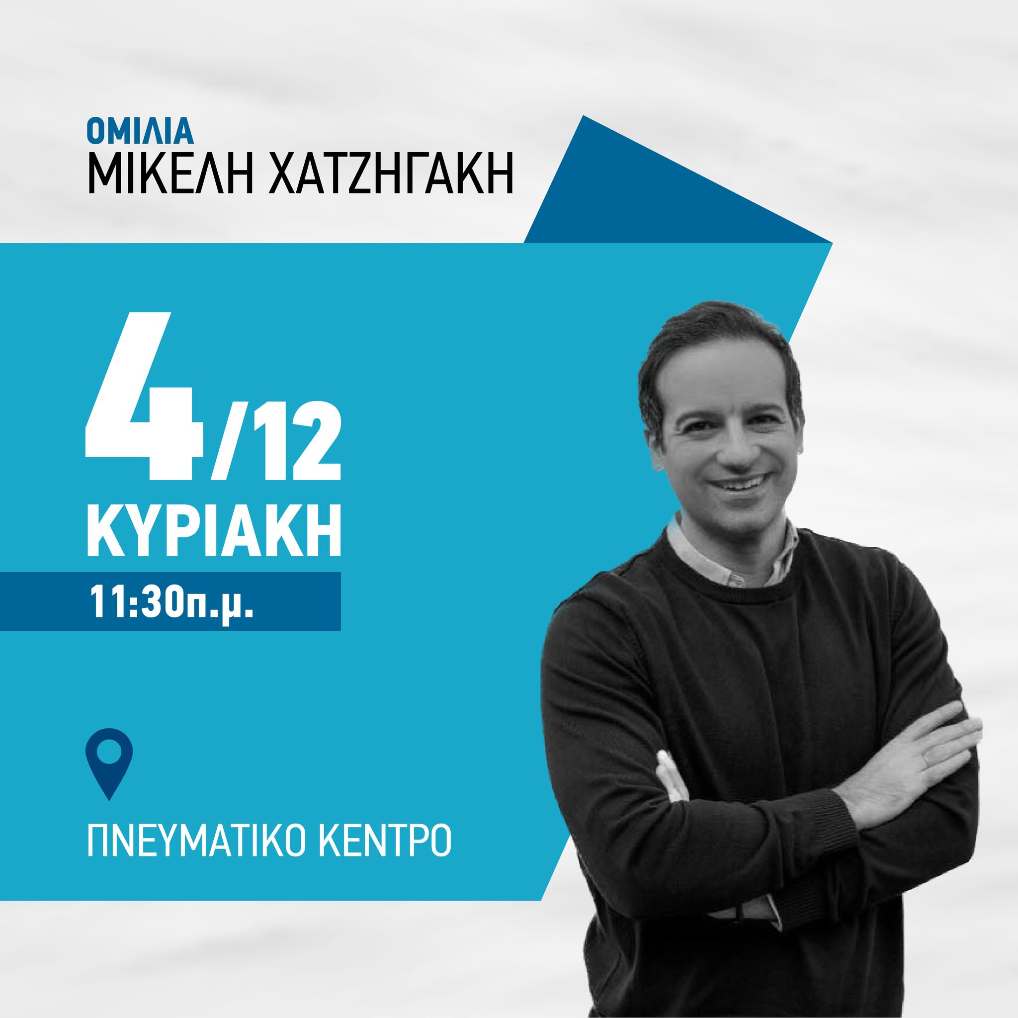 Αυτή τη Κυριακή 4 Δεκεμβρίου στις 11:30 π.μ. στο Πνευματικό Κέντρο Τρικάλων θα δώσει τις δικές του απαντήσεις στις βασικές πολιτικές και οικονομικές προκλήσεις του μέλλοντος ο Μικέλης Χατζηγάκης.