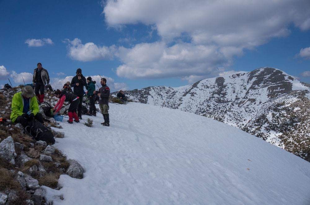 Μεσημέρι πλέον φτάνουμε σε μια προκορφή. Εδώ συνειδητοποιούμε ότι ο στόχος μας απέχει άλλες δυο περίπου ώρες. Δύσκολο το εγχείρημα. Ας σταματήσουμε λοιπόν εδώ και ας απολαύσουμε το μεσουράνημα του ήλιου και τα πρώτα σκιρτήματα της επερχόμενης άνοιξης.