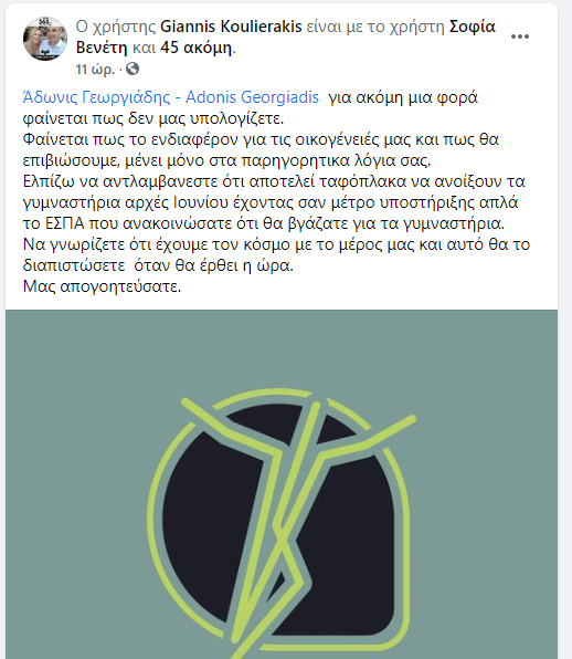 Όπως καταγράφει το trikalavoice.gr τα συσσωρευμένα προβλήματα και η οικονομική δυσπραγία είναι ικανή να οδηγήσει στο οριστικό λουκέτο 1 στα 4 γυμναστήρια των Τρικάλων. Οργισμένη ήταν η αντίδραση του προέδρου του τοπικού Συλλόγου Γιάννη Κουλιεράκη: