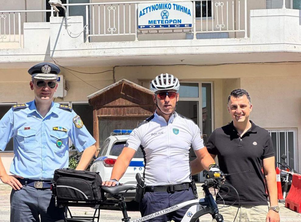 Η δωρεά αυτή αποσκοπεί στο να δώσει τη δυνατότητα στους αστυνομικούς να περιπολούν στην περιοχή των Μετεώρων με ένα μέσον ευέλικτο ,οικολογικό και αθόρυβο στοιχεία που ταιριάζουν στη περιοχή. Η τελετή παράδοσης -παραλαβής του ηλεκτρικού ποδηλατου εγινε από τον Κύριο Γαλανη Νίκο ,ένος από τους ιδιοκτήτες της εταιρίας καφέ στο Αστυνομικό τμήμα Μετεώρων.
