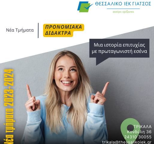 Με νέες ειδικότητες που θα λειτουργήσουν από το φθινοπωρινό εξάμηνο, το ΘΕΣΣΑΛΙΚΟ ΙΕΚ ΤΡΙΚΑΛΩΝ δίνει τη δυνατότητα στους νέους του νομού να σπουδάσουν την πόλη τους και να εξασφαλίσουν μια θέση στην αγορά εργασίας.