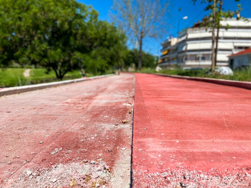 Εικόνες από τον νέο παραποτάμιο ποδηλατόδρομο πίσω από τον Άγιο Κωνσταντίνο