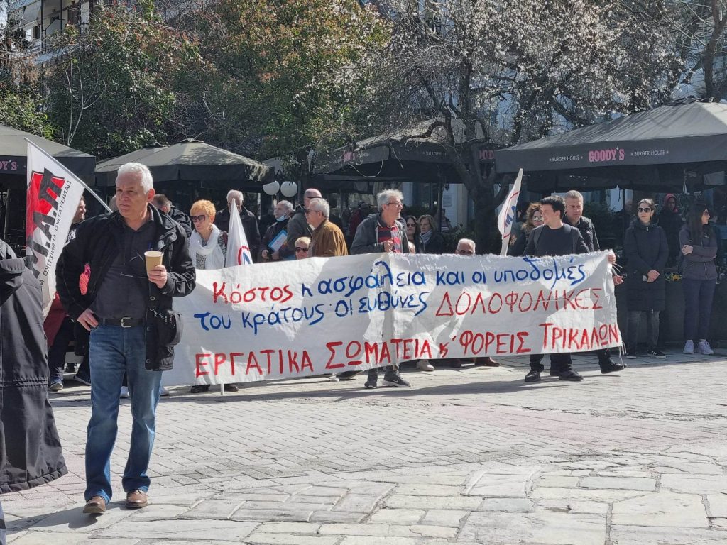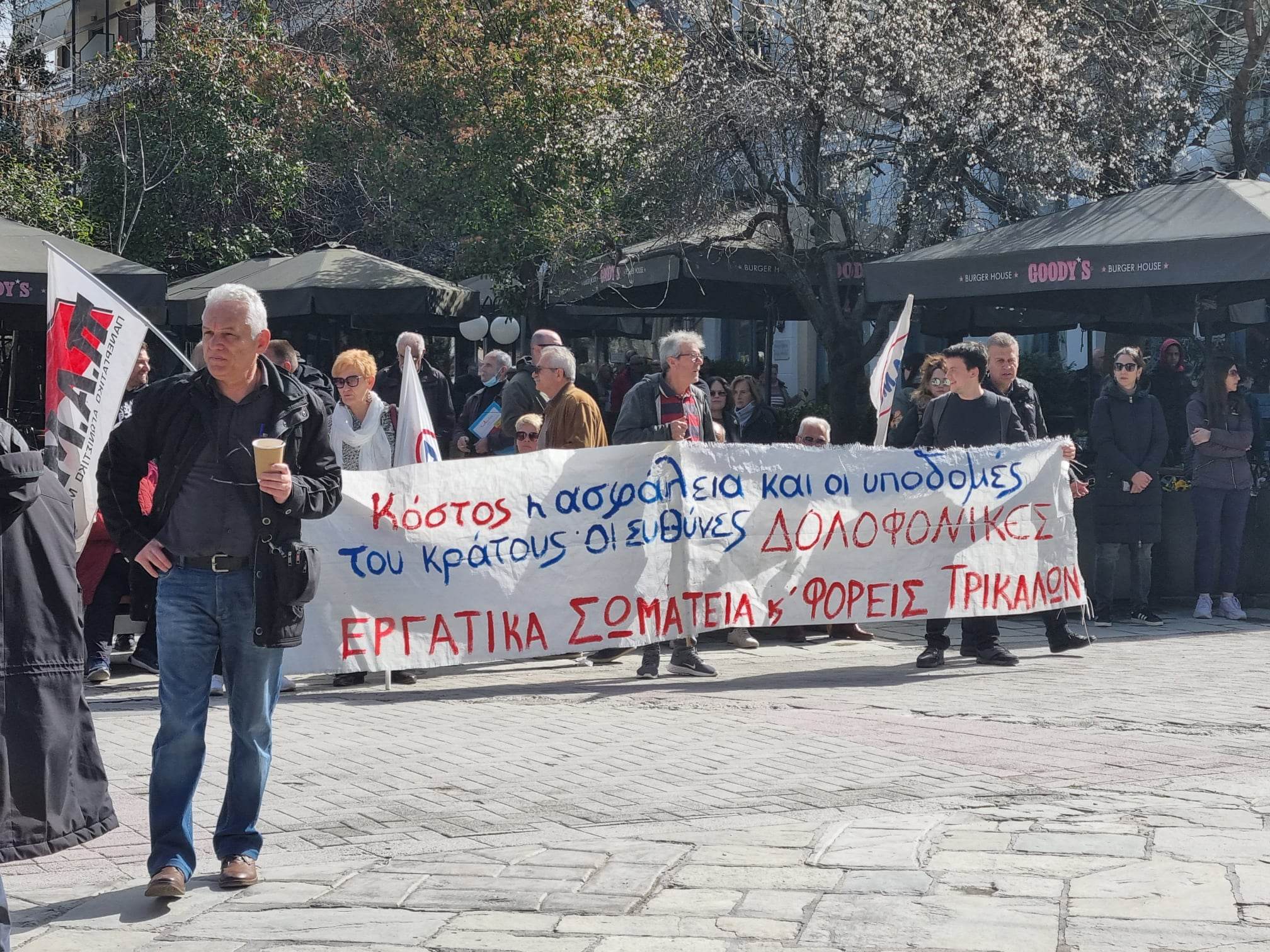 Πλήθος κόσμου στις σημερινές συγκεντρώσεις που διοργανώθηκαν από φορείς και συνδικαλιστικά όργανα στο κέντρο των Τρικάλων.