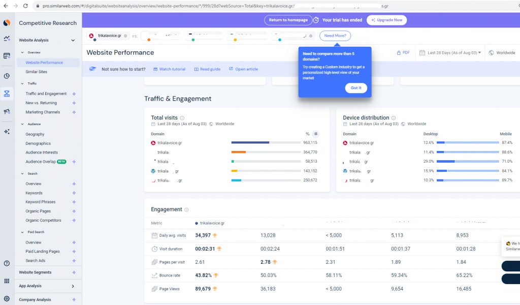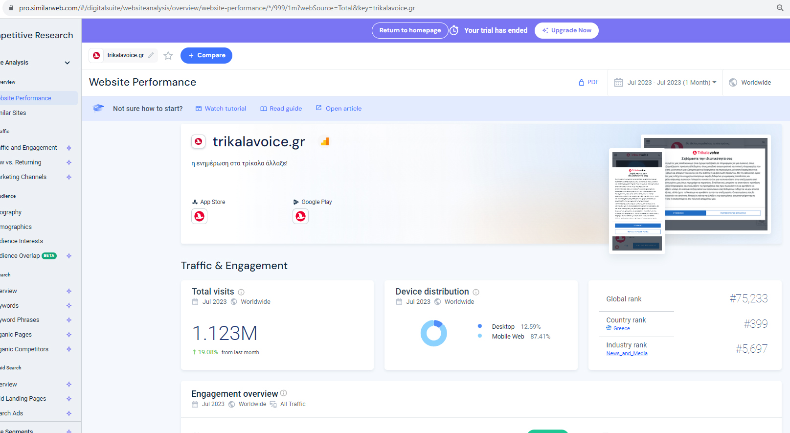 Επιβεβαιώθηκε μέσα από την πλατφόρμα μετρήσεων της similarweb, η οποία κατέγραψε 1.123.000 αναγνώστες (963.115 τις τελευταίες 28 ημέρες, όπως φαίνεται και παρακάτω).