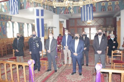 Στον Ιερό Ναό υπήρχαν υψωμένες οι Σημαίες των Σχολείων της Πύλης τιμώντας έτσι η Μαθητική Κοινότητα την Εθνική μας Παλιγγενεσία.