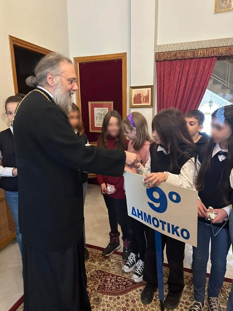 Την Πέμπτη 21-12-2023, λίγο πριν τα Χριστούγεννα, μαθητές του 9ου Δημοτικού Σχολείου Τρικάλων έζησαν μια μοναδική εμπειρία, επισκεπτόμενοι τον Μητροπολίτη Τρίκκης, Γαρδικίου και Πύλης Χρυσόστομο, στα Γραφεία της Ιεράς Μητροπόλεως, επί της οδού Απόλλωνος 19.