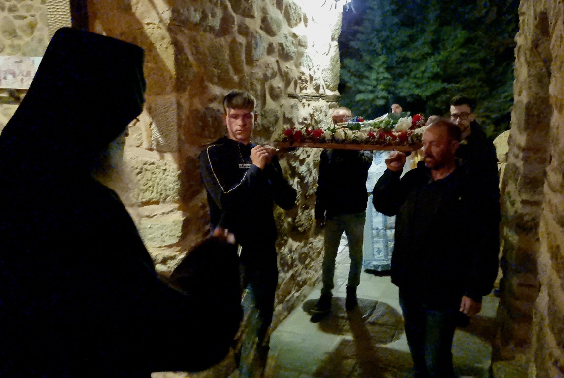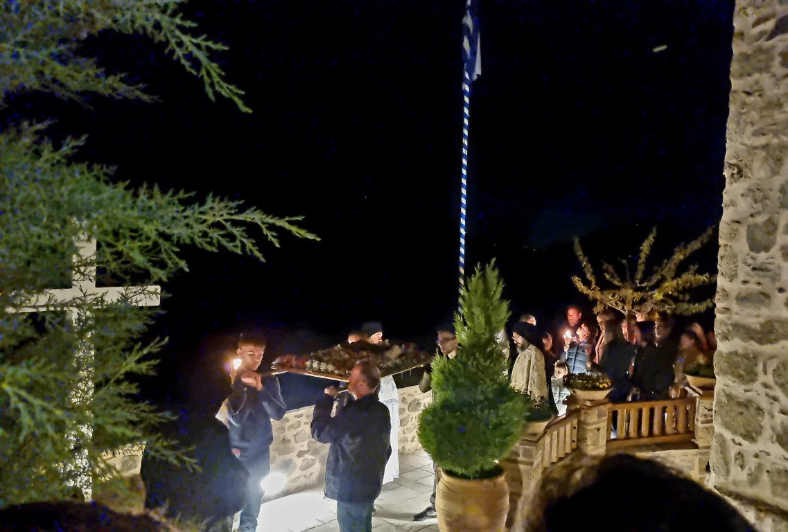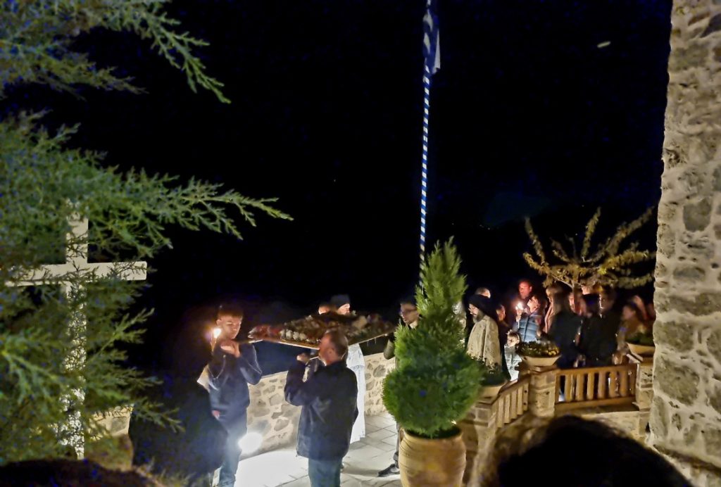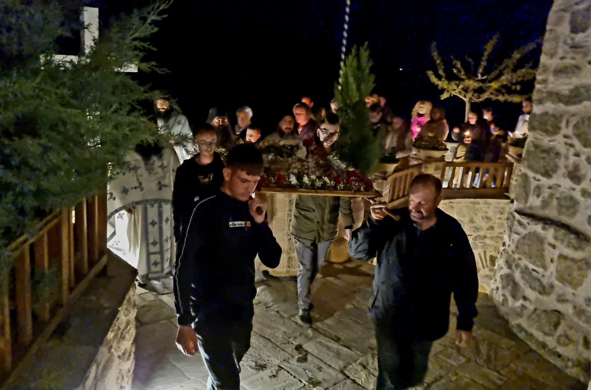 Σε κλίμα κατάνυξης και απόλυτου σκότους τελέστηκε το βράδυ της Μεγάλης Παρασκευής η Ακολουθία του Επιταφίου στις Ιερές Μονές των Μετεώρων.