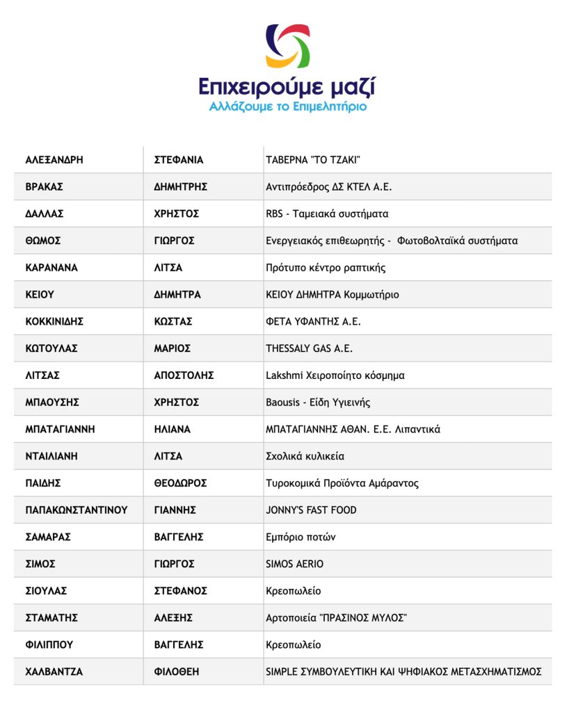 Όπως καταγράφει το trikalavoice.gr σήμερα δίνει στη δημοσιότητα ακόμη είκοσι (20) ονόματα γνωστών επιχειρηματιών, οι οποίοι κατέρχονται υποψήφιοι σύμβουλοι με τον συνδυασμό του. Υπενθυμίζεται ότι πριν λίγες μέρες είχε ανακοινώσει τους πρώτους σαράντα (40) υποψηφίους του ΕΔΩ, ενώ αναμένεται και τρίτο κύμα: