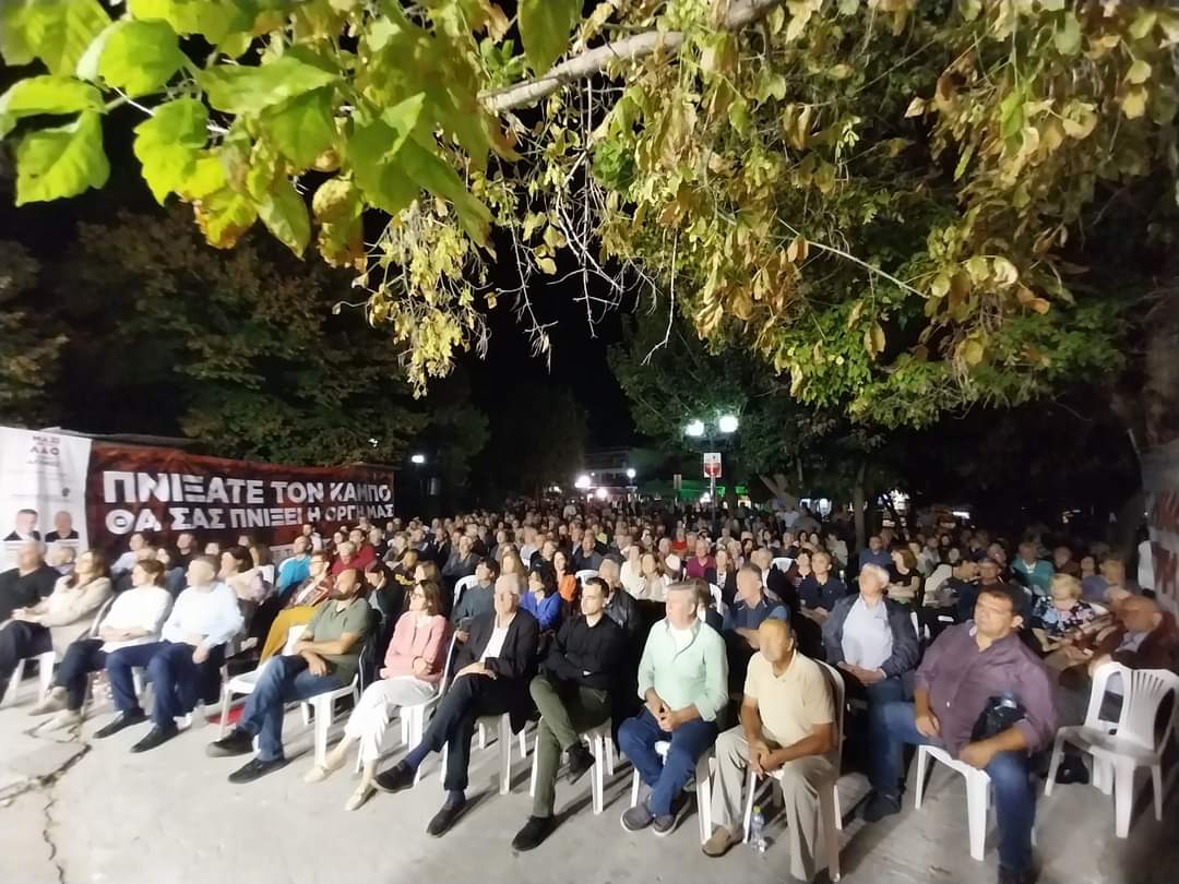 «Στις κάλπες της ερχόμενης Κυριακής, για την ανάδειξη του Περιφερειακού, των Δημοτικών και Τοπικών Συμβουλίων, η θλίψη και η οργή για τους άδικους θανάτους των συνανθρώπων μας, για τις τεράστιες καταστροφές σπιτιών, επιχειρήσεων, κτηνοτροφικών εγκαταστάσεων και δεκάδων χιλιάδων στρεμμάτων καλλιεργήσιμων εκτάσεων, να μετατραπούν σε καταδίκη της αντιλαϊκής πολιτικής που ασκούν διαχρονικά όλες οι κυβερνήσεις, η περιφερειακή και οι δημοτικές αρχές, με υπερψήφιση των ψηφοδελτίων της “Λαϊκής Συσπείρωσης”, για να μπει ένα τέλος στο “πάμε και όπου βγει”», είπε ξεκινώντας την ομιλία του ο Τάσος Τσιαπλές.
