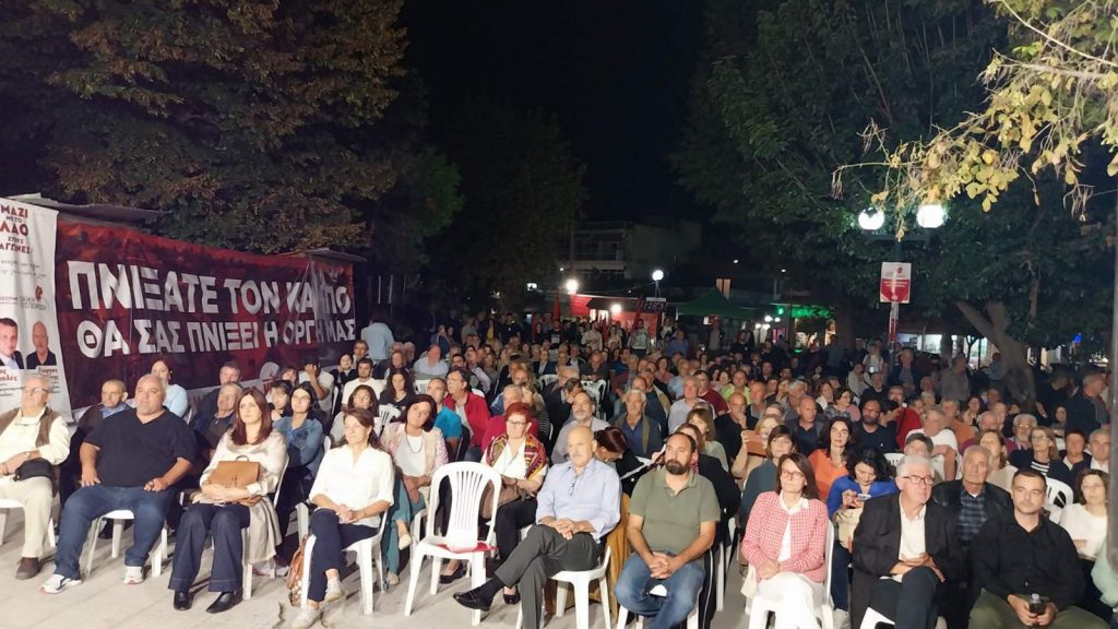 Καταλήγοντας τόνισε: «το ψηφοδέλτιό μας απαρτίζεται από δοκιμασμένους αγωνιστές. Ανθρώπους που είναι το αποκούμπι του λαού στα προβλήματά του, στους αγώνες του, τις διεκδικήσεις και τις κατακτήσεις του. Μέσα από τη δράση τους στο κίνημα, τις κινητοποιήσεις εργατικών σωματείων, τους αγώνες των αγροτών, των αυτοαπασχολούμενων και της νεολαίας.Δίνουμε το χέρι μας σε όποιον σηκώνεται. Καλούμε τους νέους και τις νέες, τους ανθρώπους του μόχθου και της δημιουργίας, τους μικροεπαγγελματίες και τους αυτοαπασχολούμενους, τους βιοπαλαιστές αγρότες, τους απόμαχους της εργασίας, τη μεγάλη δύναμη των εργατοϋπαλλήλων, τους επιστήμονες, τους ανθρώπους του πολιτισμού και του αθλητισμού του τόπου μας.