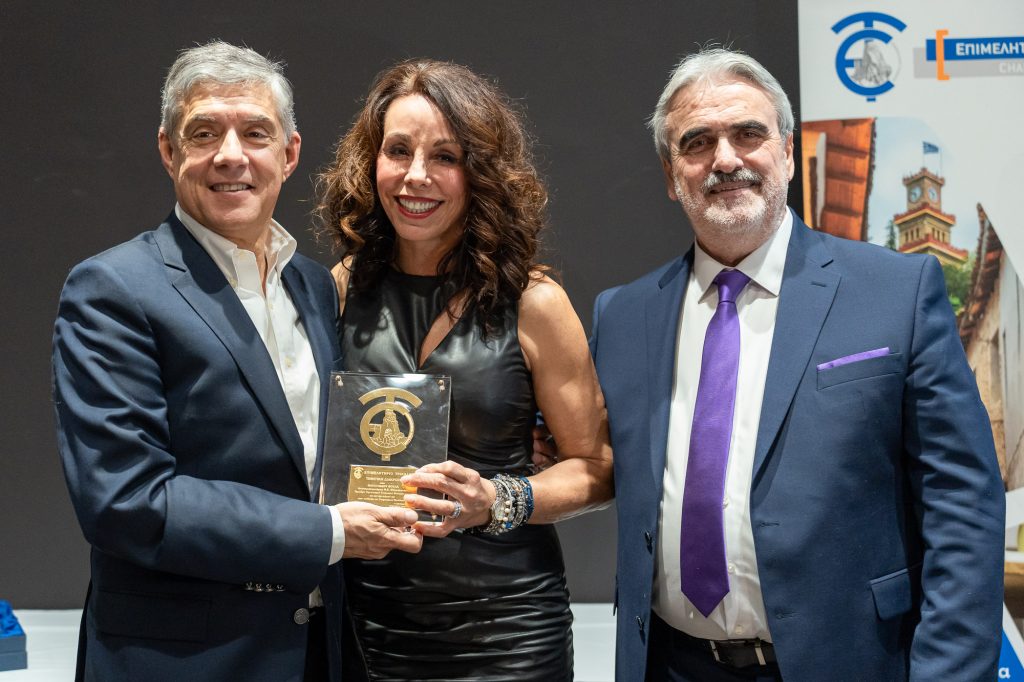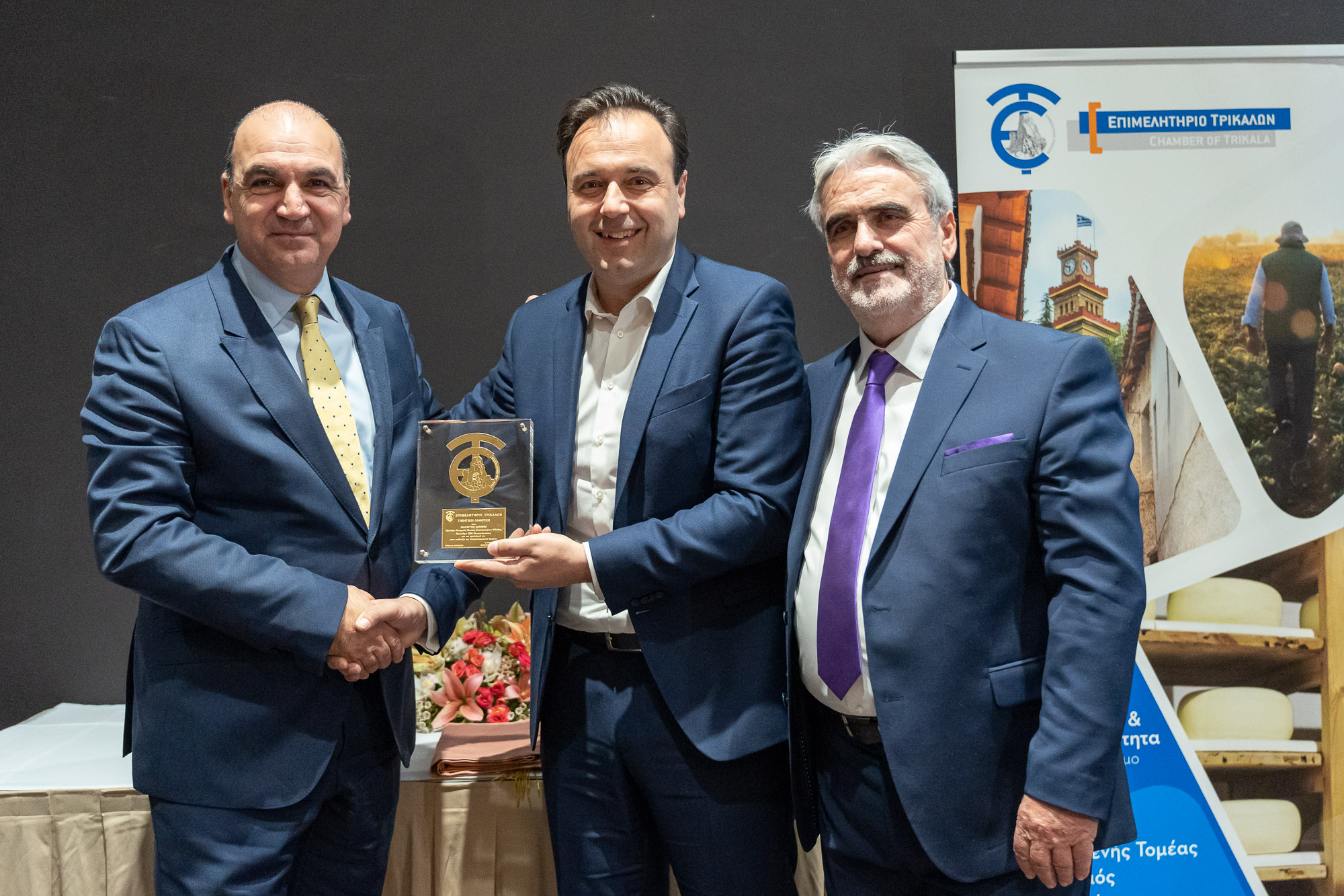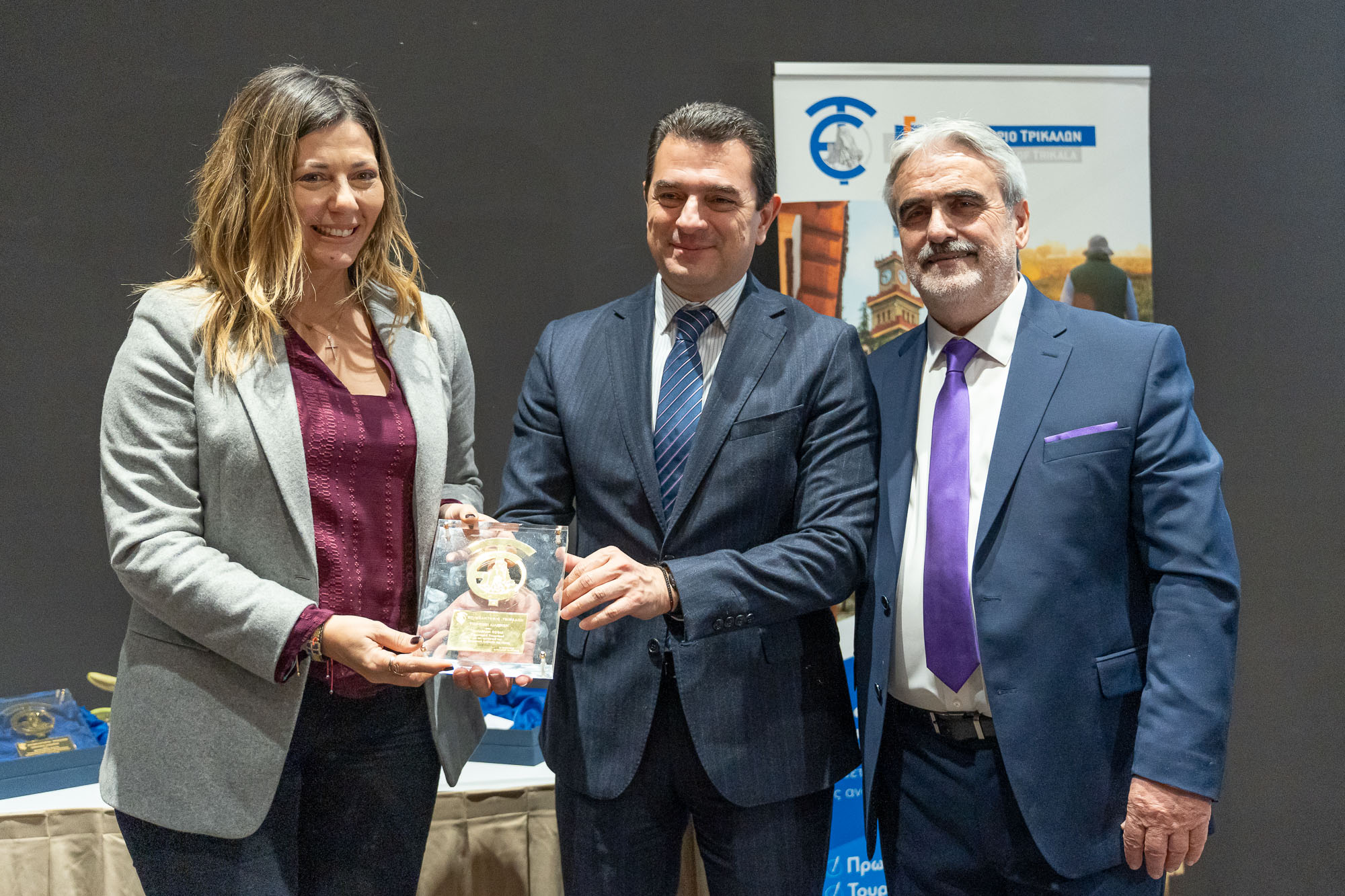 Ακολούθησε η βράβευση των επίσημων προσκεκλημένων κυριών Μπρατάκου, Μασούτη και κυριών Ζαχαράκη και Πατουλίδου με τους οποίους το Επιμελητήριο Τρικάλων έχει κοινές δράσεις και συναντίληψη για την προώθηση των αναπτυξιακών του στόχων.