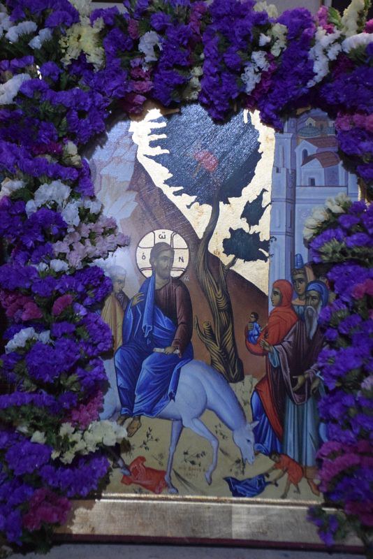 Προ της Απολύσεως, πραγματοποιήθηκε η λιτάνευση της Ιεράς Εικόνας της Βαϊοφόρου εντός του Ιερού Μητροπολιτικού Ναού, καθώς εψάλησαν οι περί του Ζωοδόχου Κυρίου Τάφου προβλεπόμενοι ύμνοι, όπως ορίζει το Τυπικό της Ιεράς Μεγίστης Μονής Βατοπαιδίου, ενώ παράλληλα μοιράστηκαν σύμφωνα με το έθος και την τάξη της Αγίας μας Εκκλησίας και τα ευλογημένα Βάϊα.