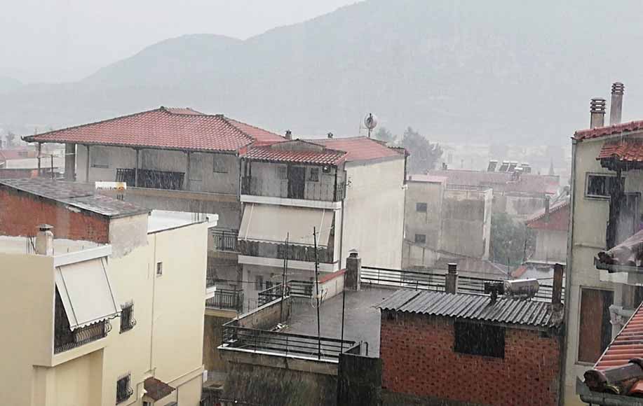 Έντονη βροχόπτωση συνοδευόμενη από κεραυνική δραστηριότητα και ολιγόλεπτη χαλαζόπτωση έπληξε νωρίς το απόγευμα την Καλαμπάκα.
