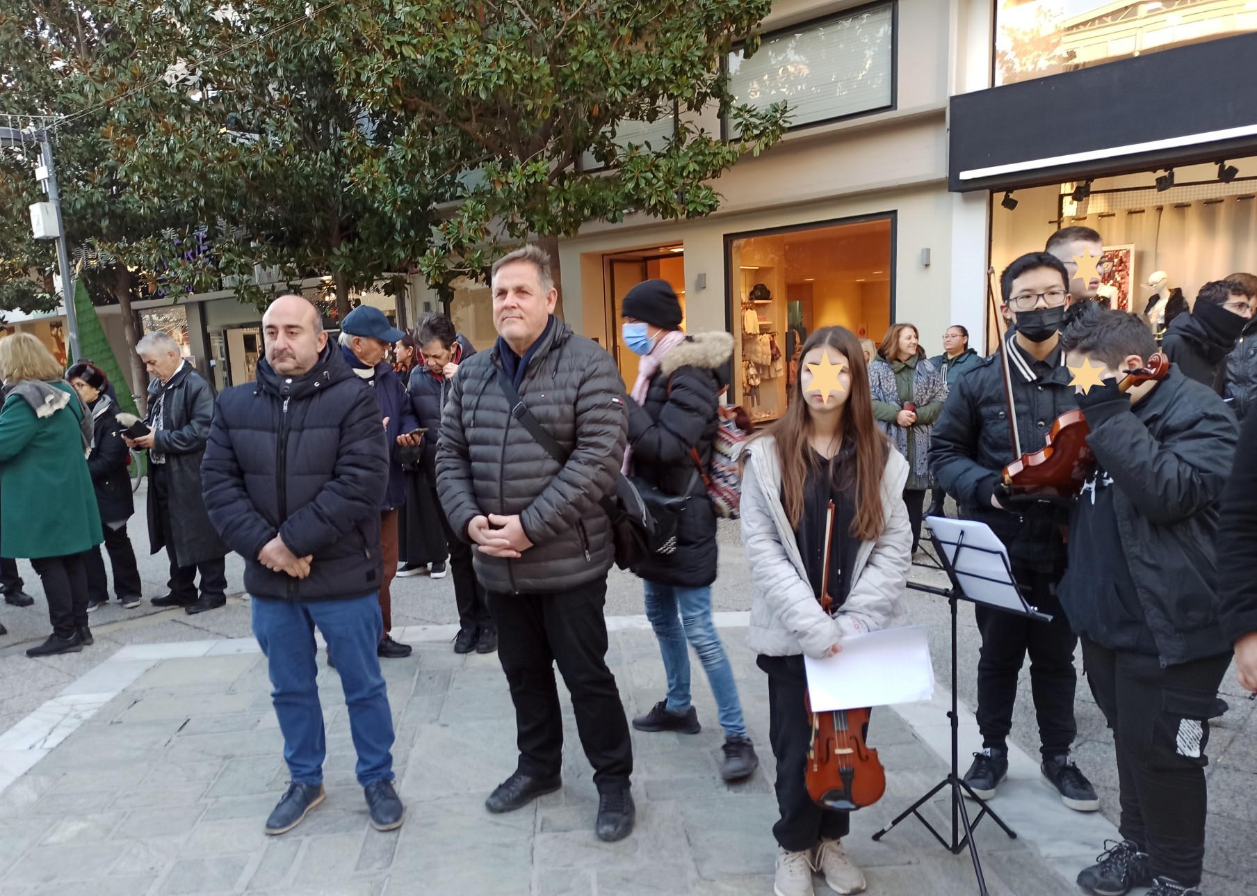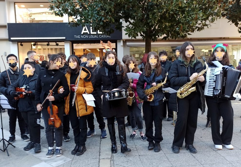 Τις μουσικές ευχές του Μουσικού Σχολείου Τρικάλων δέχθηκαν το πρωί της Παρασκευής 23 Δεκεμβρίου 2022 πολίτες και εκπρόσωποι του Δήμου. Η ορχήστρα του σχολείου έπαιξε γνώριμες μελωδίες και κάλαντα των εορτών, πλημμυρίζοντας με νότες τον πεζόδρομο της Ασκληπιού.