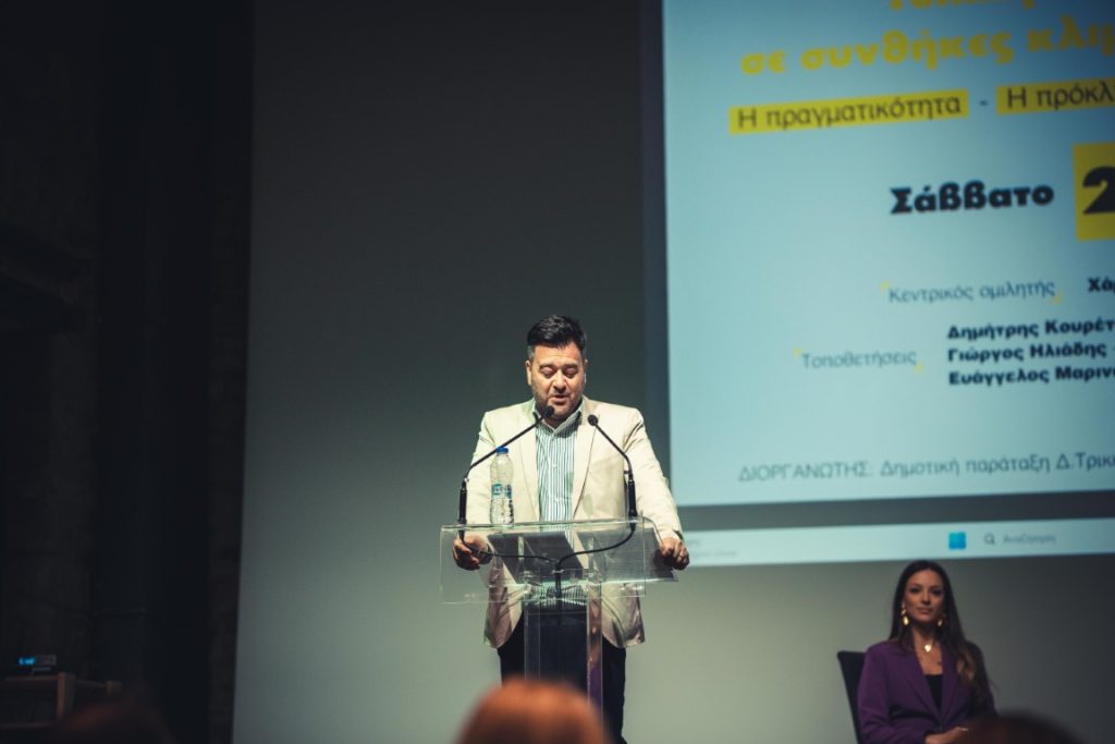 Με θέμα την τοπική αυτοδιοίκηση και την κλιματική αλλαγή ο επικεφαλής της αξιωματικής αντιπολίτευσης του Δήμου Τρικκαίων φιλοξένησε στην αίθουσα “Παπαστεριάδη” σε εξαιρετικά ενδιαφέρον πάνελ τον δήμαρχο Αθηναίων Χάρη Δούκα και τον επίκουρο Καθηγητή του Ε.Μ.Π. Ευάγγελο Μαρινάκη. Οι ομιλητές στάθηκαν ιδιαίτερα στην “ενεργειακή δημοκρατία” και στην “κοινωνική δικαιοσύνη” κάνοντας λόγο για ανάγκη άμεσης αλλαγής του μοντέλου που σήμερα εφαρμόζεται και δίνει ευκαιρίες μόνο σε “μεγάλους παίκτες της αγοράς” δημιουργώντας ένα ασφυκτικό πλαίσιο.