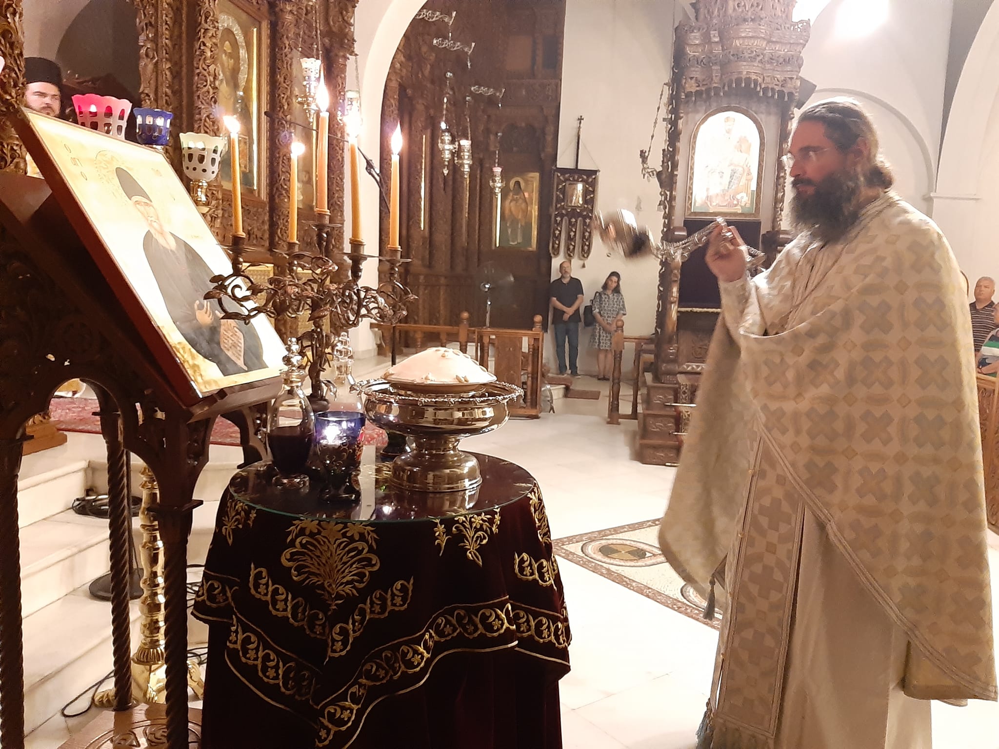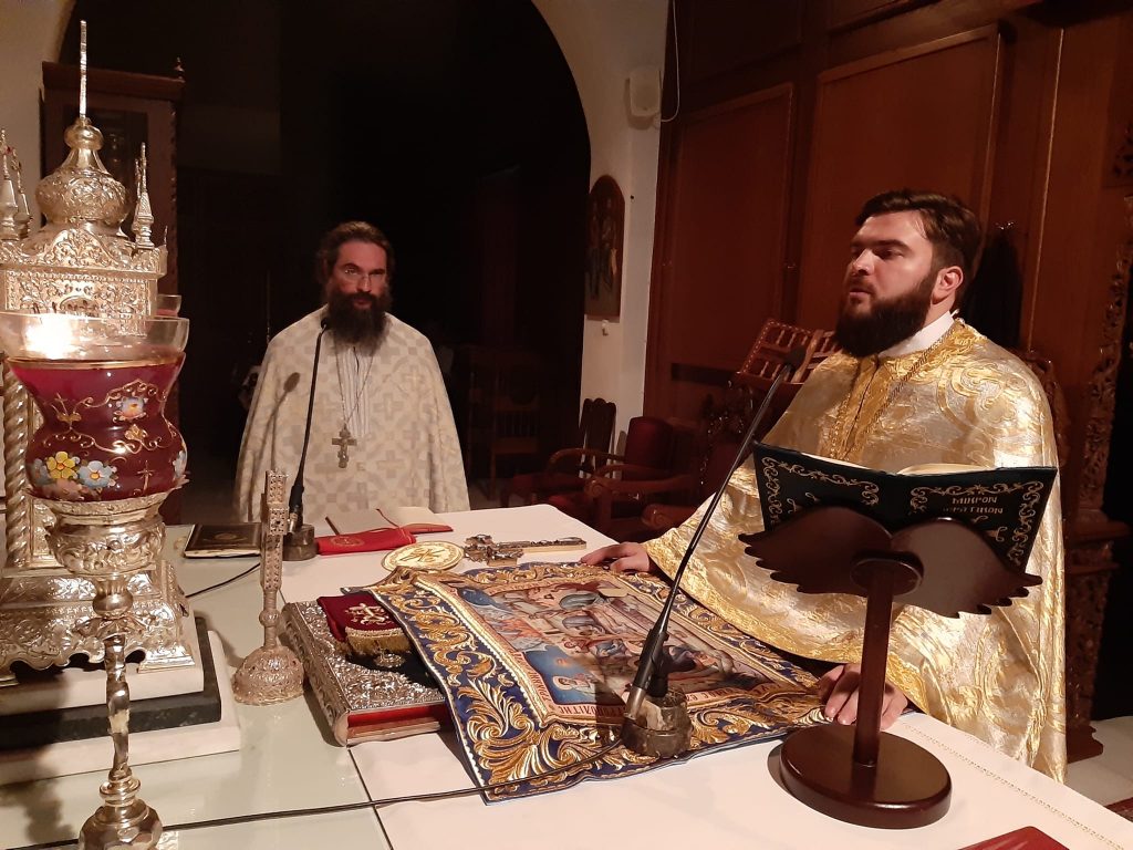 Χθες το απόγευμα τελέστηκε ο πανηγυρικός Εσπερινός και ακολούθως το βράδυ κατανυκτική Αγρυπνία ιερουργούντων του Πρωτοσυγκέλλου της καθ’ ημάς Μητροπόλεως π. Αλεξίου Κανίνα και του συνεφημερίου του Ναού π. Νικολάου Δαλαγιώργου. Δείτε φωτογραφίες του Δημήτρη Καραγιάννη: