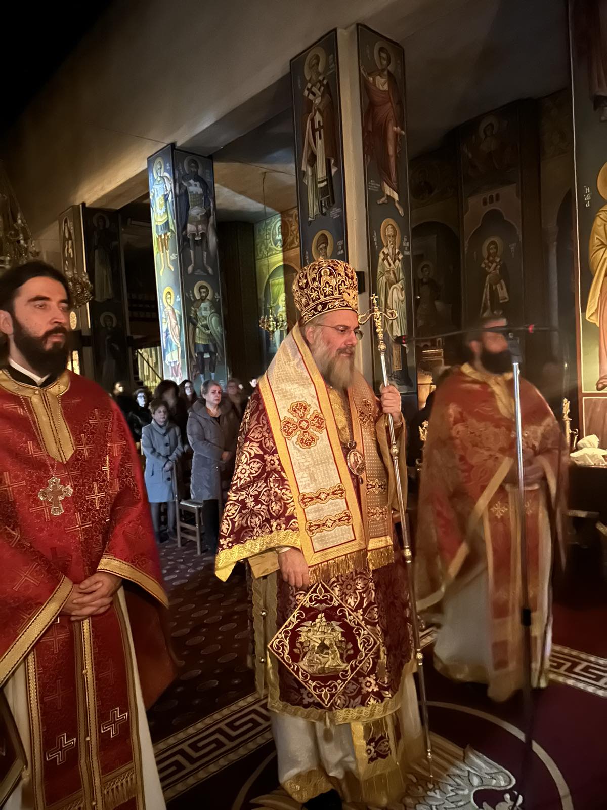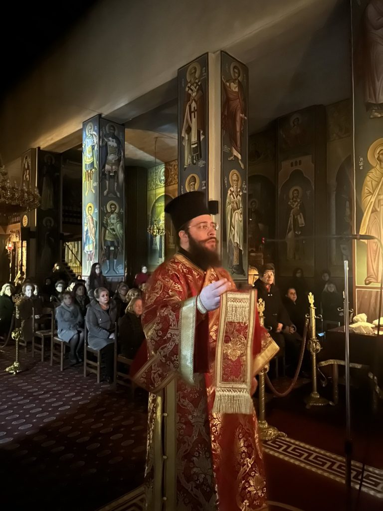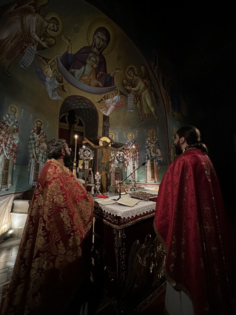 Ιερούργησε ο Μητροπολίτης Τρίκκης Χρυσόστομος συμπαραστατούμενος από τον εφημέριο του Ναού π. Εφραίμ Γιαννάκο και τον Αρχιμανδρίτη Δανιήλ Γκανάτσιο. Ο κ. Χρυσόστομος με το πέρας της Ιεράς Αγρυπνίας μίλησε καταλλήλως στους πιστούς.
