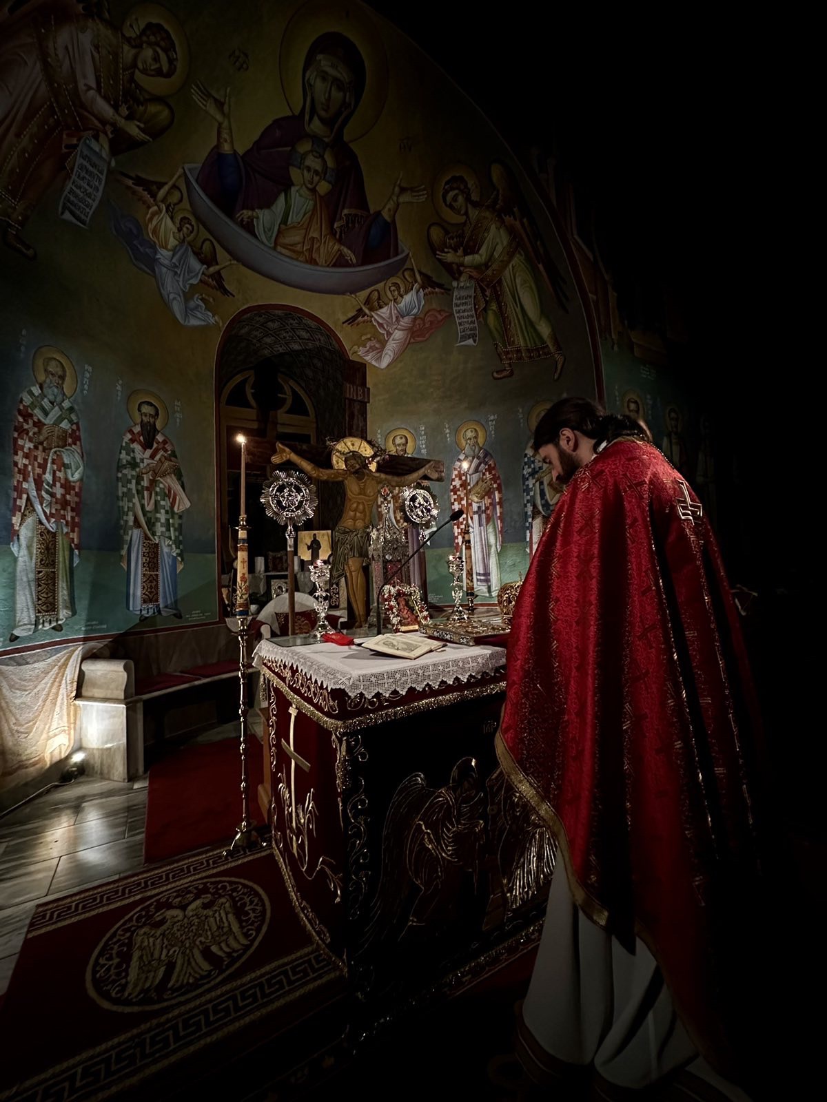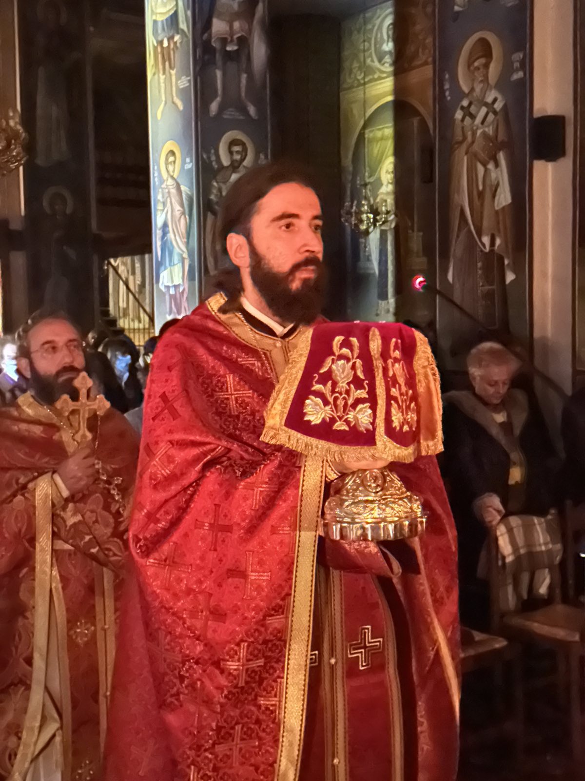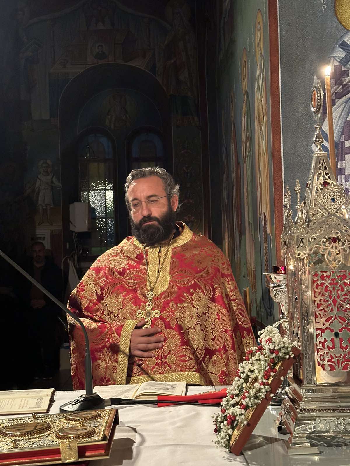 Ιερούργησε ο Μητροπολίτης Τρίκκης Χρυσόστομος συμπαραστατούμενος από τον εφημέριο του Ναού π. Εφραίμ Γιαννάκο και τον Αρχιμανδρίτη Δανιήλ Γκανάτσιο. Ο κ. Χρυσόστομος με το πέρας της Ιεράς Αγρυπνίας μίλησε καταλλήλως στους πιστούς.
